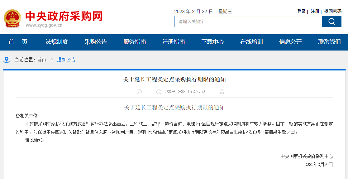 关于延长工程类定点采购执行期限的通知