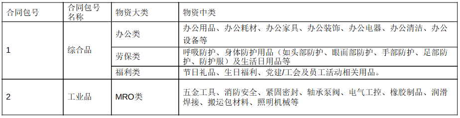 本项目划分2个合同包,综合品类和工业品类,其中综合品类拟定入围电商数量为5家,工业品类拟定入围电商数量为5家。